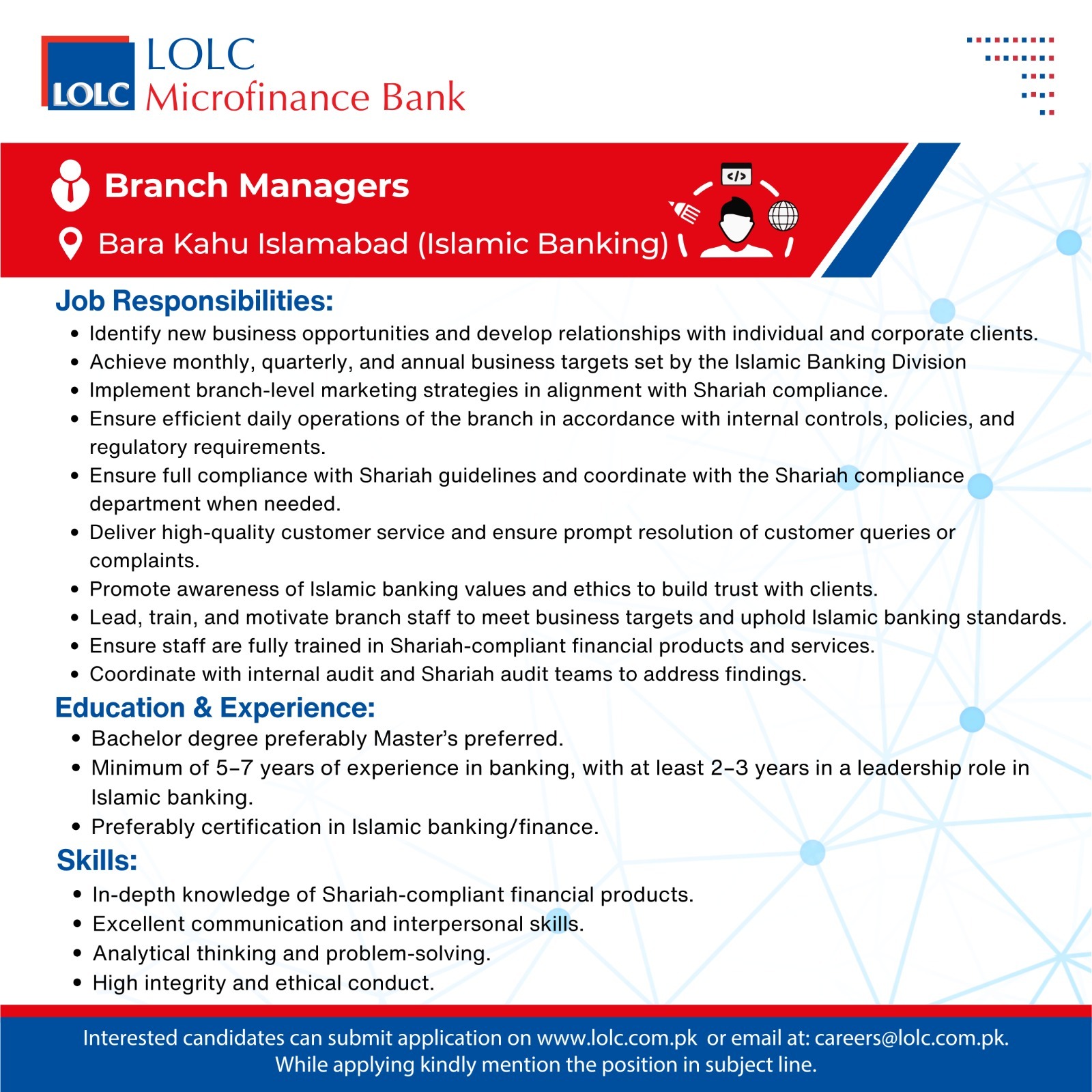 Branch Manager (Islamic Banking ) – Bara Kahu Islamabad